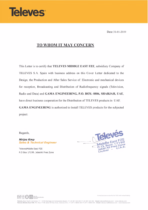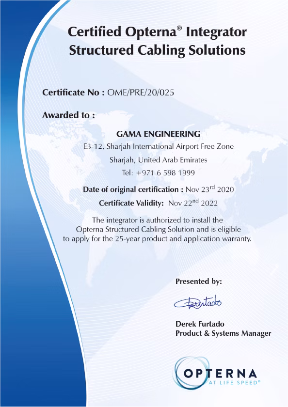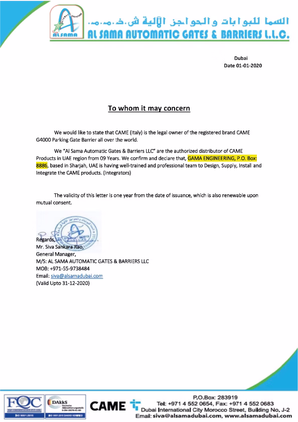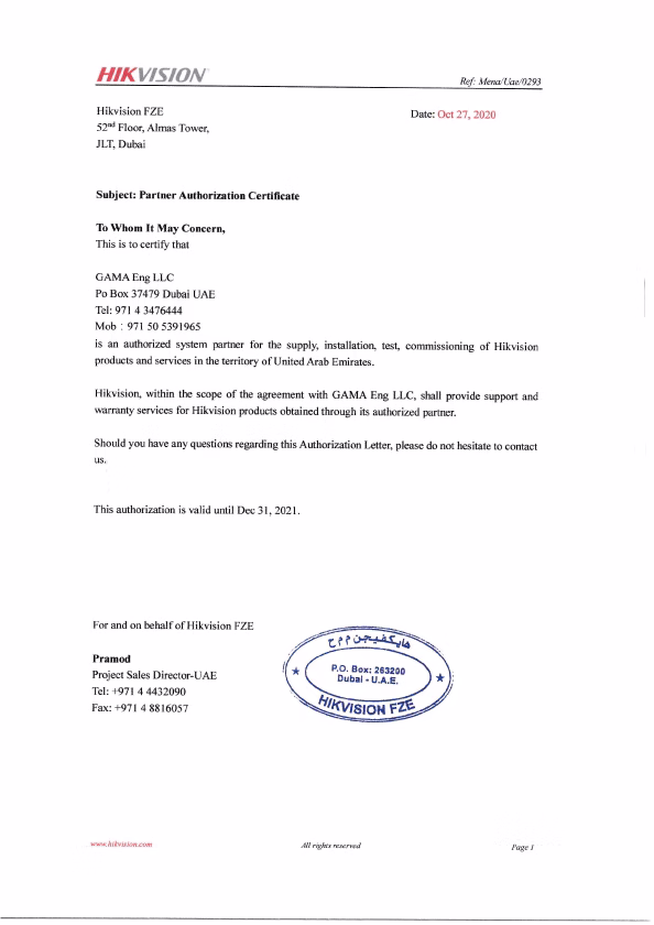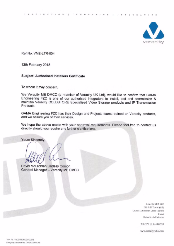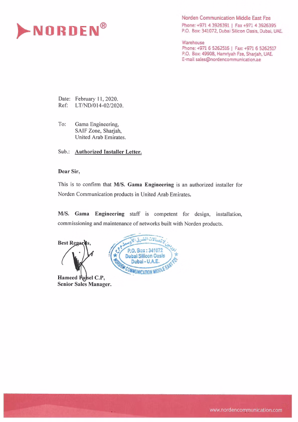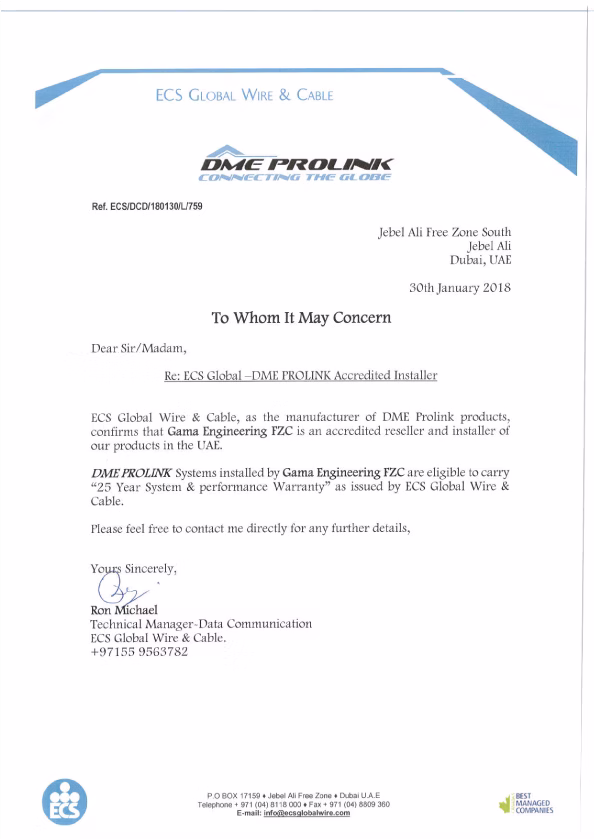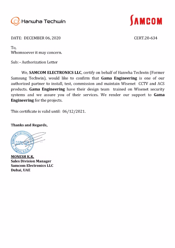 “We wish to put on record our appreciation to GAMA Engineering for their performance on the successful completion of the Supply, Testing & Commissioning of BMS, GRMS, LCS, ACS & CCTV System at Kempinksi Hotel & Apartment in Muscat and hope they will maintain the positive attitude throughout their future projects.”